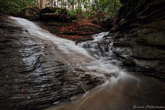 I'd heard of and seen photo's of Nuzum Run, so I talked to my friend Brian Peterman, who is from the area and hikes it extensively. This is his description. “Nuzum Run has an interesting double waterfall where the two branches of Nuzum Run come together. The falls are right off the old County Road to Hammond, right after you cross one of the branches that runs across the road and before the trestle.