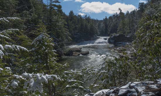If you're visiting the falls in Terra Alta, just take WV 39 east out of town to Oakland, MD. Turn left on 3rd St. and then left on Center St. to the end where it intersects with Liberty. Turn right on Liberty St./Herrington Manor Rd. Follow for 5.8 miles and bear right on Swallow Falls Rd. Go left on Maple Glade Rd. and follow to parking and trailhead.
