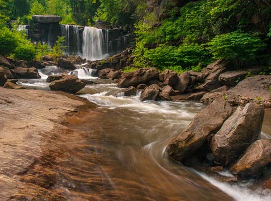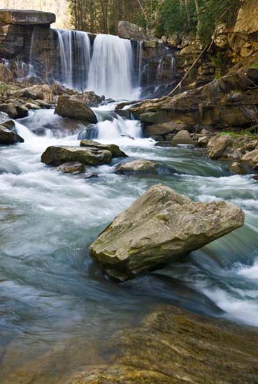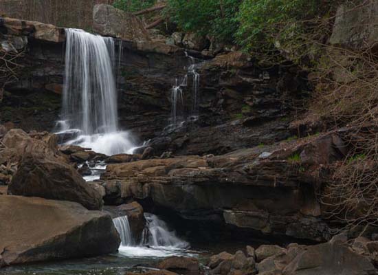 From Gauley Bridge, follow US 60 to Chimney Corner where you will bear right on SR 16. Follow to the Cotton Hill bridge, cross the bridge, and Laurel Creek is on the right.