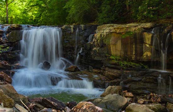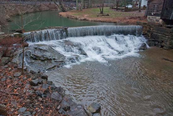 From US 19 in Fayetteville, follow SR 16 for approximately 5.5 miles and you will begin to see the Laurel Creek along the side of the road. It all begins at the old gas station, where there is a dam with a spill falls. You can stop at the station. There is room to park, but I don't think this is the place to park if you are going to hike down the road to see the falls. I'm guessing it's private. You could maybe ask.