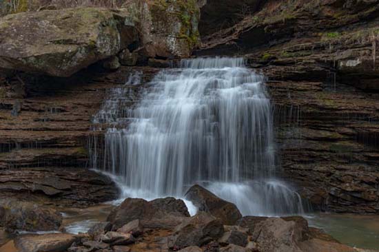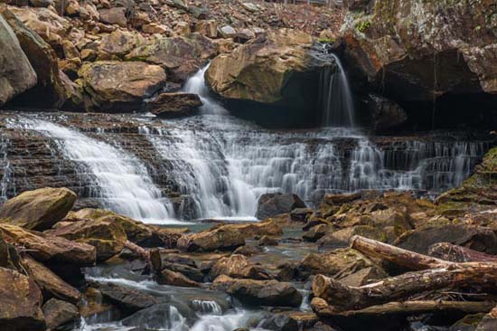 This is the Laurel Creek as it tumbles downhill to the New River and there are a number of falls in this stretch. One thing to know about this area is that it's not exactly accommodating to parking or pedestrians. It's a very busy and winding road and people do not drive slow through here. Just be safe. Getting into the creek is over some pretty jagged rip-rap and there's a lot of piled up lumber in places. All that said, photography is very good. Nice compositions here.